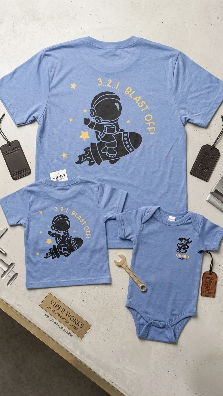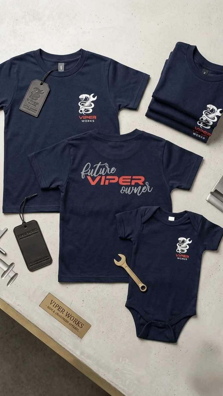 Shop › Viper Works Kids Tee Image 1 of 3 Image 2 of 3 Image 3 of 3 Viper Works Kids Tee $22.00 100% cotton kids Tee. True size but will shrink after first wash. Customize as you like. Kids Size: Select Kids Size Small Medium Large Color: Select Color Black Gray Purple Green Blue Red Custom - see note Theme: Select Theme Future Viper Owner Add To Cart Added! 100% cotton kids Tee. True size but will shrink after first wash. Customize as you like.